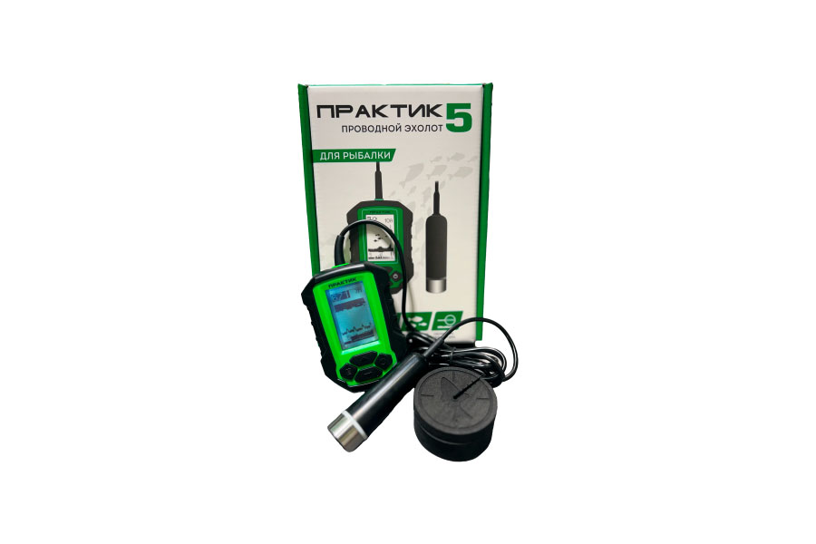 Эхолот Практик 5 предназначен для исследования водоема и поиска перспективных мест для рыбалки. Данная модель подходит как для начинающих, так и для опытных рыболовов. Принцип работы прибора: его датчик излучает в воде ультразвуковые волны и обрабатывает эхо-импульсы, отраженные от дна и прочих объектов. Обнаруженные предметы и животные рыболов видит на экране устройства в виде проекции. Эхолот показывает: глубину водоема (точность +/- 10 см), рельеф дна (свалы, коряги, каменные глыбы, ямы и пр.), плотность грунта (в цифровом выражении), наличие рыбы (уникальный алгоритм распознавания рыбы и отображение символов ), наличие плавающих объектов в толще воды (водоросли, палки, даже пузыри с воздухом), термоклины, флешер (отображение объектов в режиме реального времени). Количество лучей трансдьюсера – 1, частота первого луча – 0 кГц, угол – 35°. Данная модель имеет крайне чувствительный датчик, благодаря которому четко видит даже маленькую мормышку на глубине до 25 м!